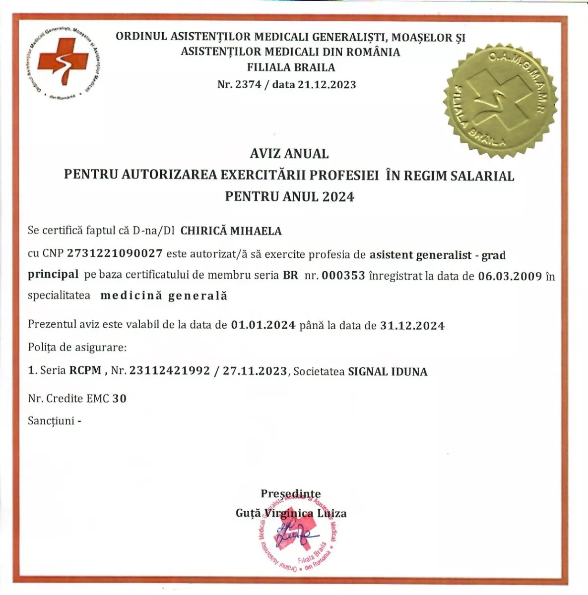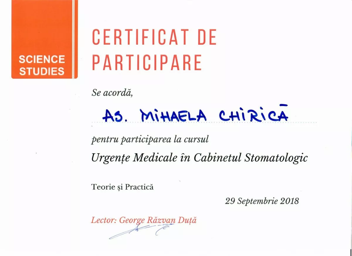„Devizia mea este: îmi valorific PASIUNEA în domeniul Asistenței Medicale Stomatologice pentru fiecare PACIENT. Prin ENERGIA mea POZITIVĂ cu care întâmpin PACIENȚII și COLEGII creez STARE DE BINE. De aici rezultă DEVOTAMENTUL și RESPECTUL dăruit în cei 20 de ani de stomatologie în această firmă.”