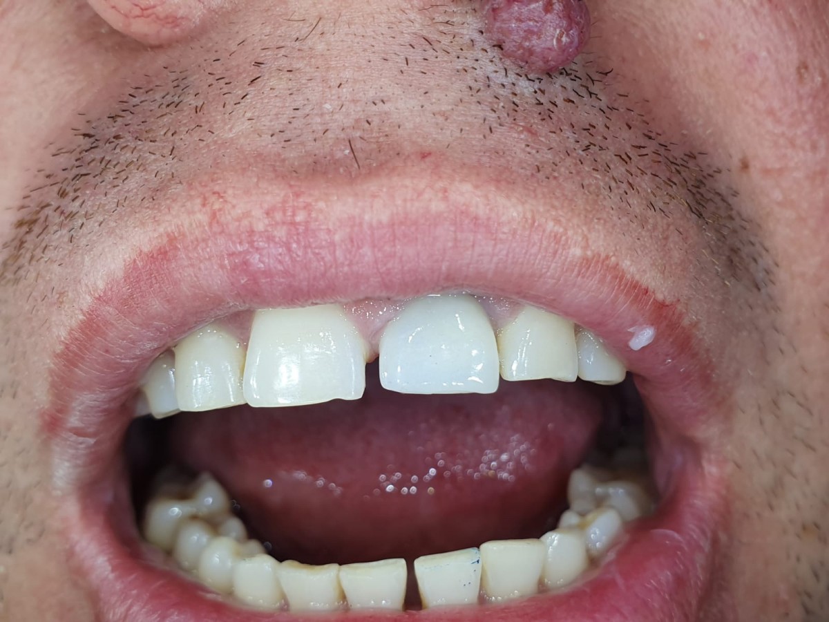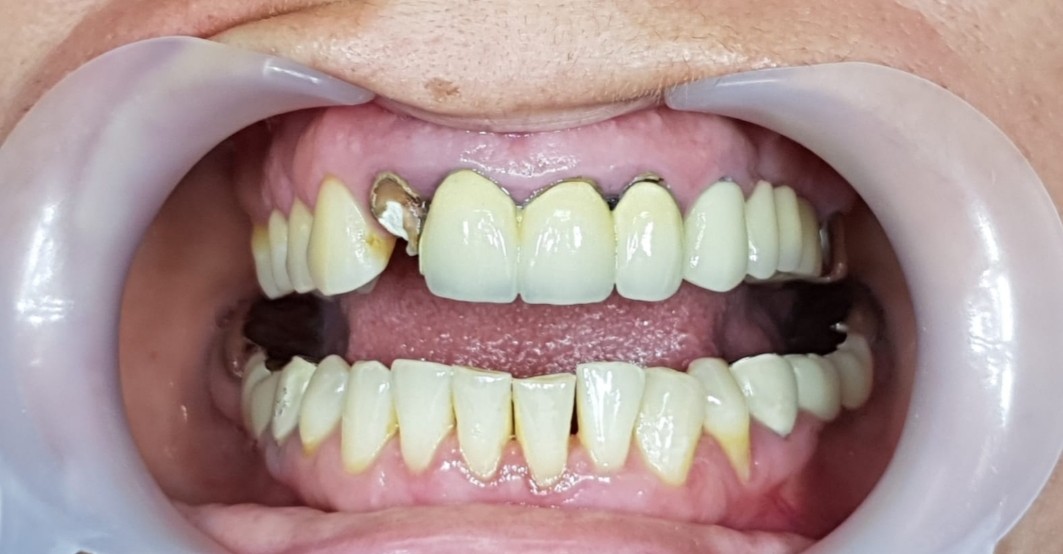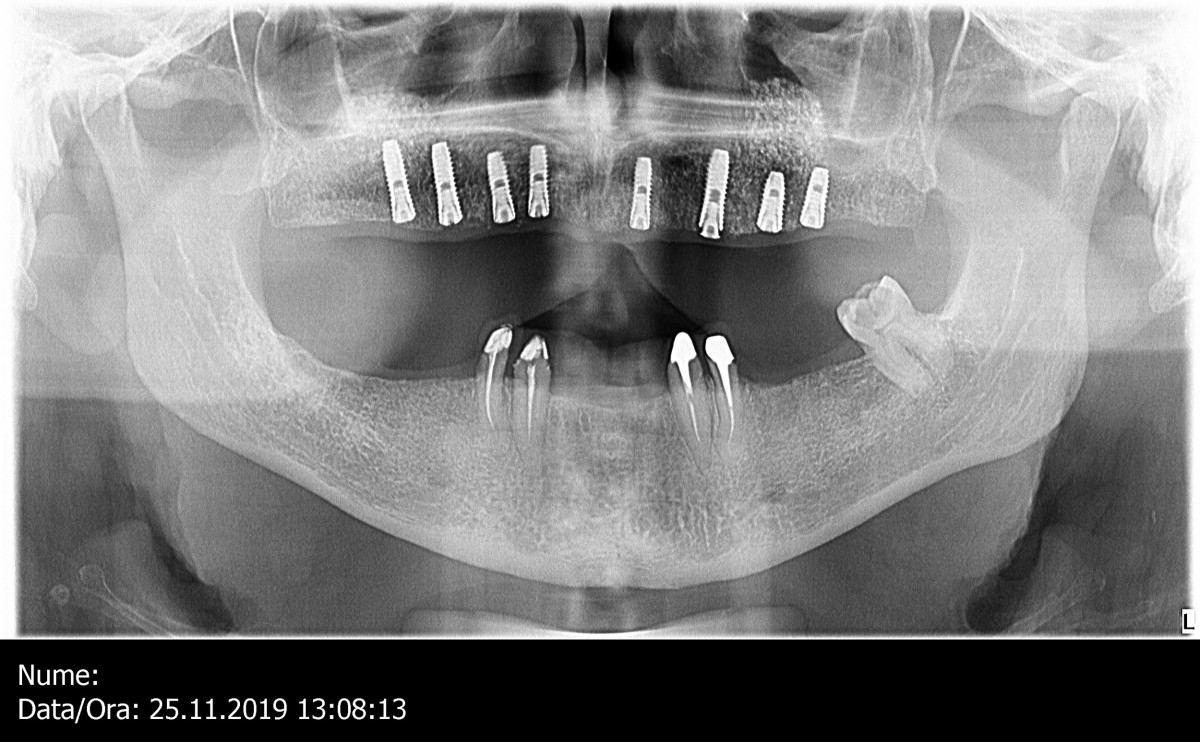 Reabilitare complexă bimaxilară cu coroane metalo-ceramice pe implanturi superioare si inferioare pe dinți naturali