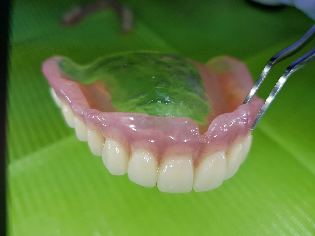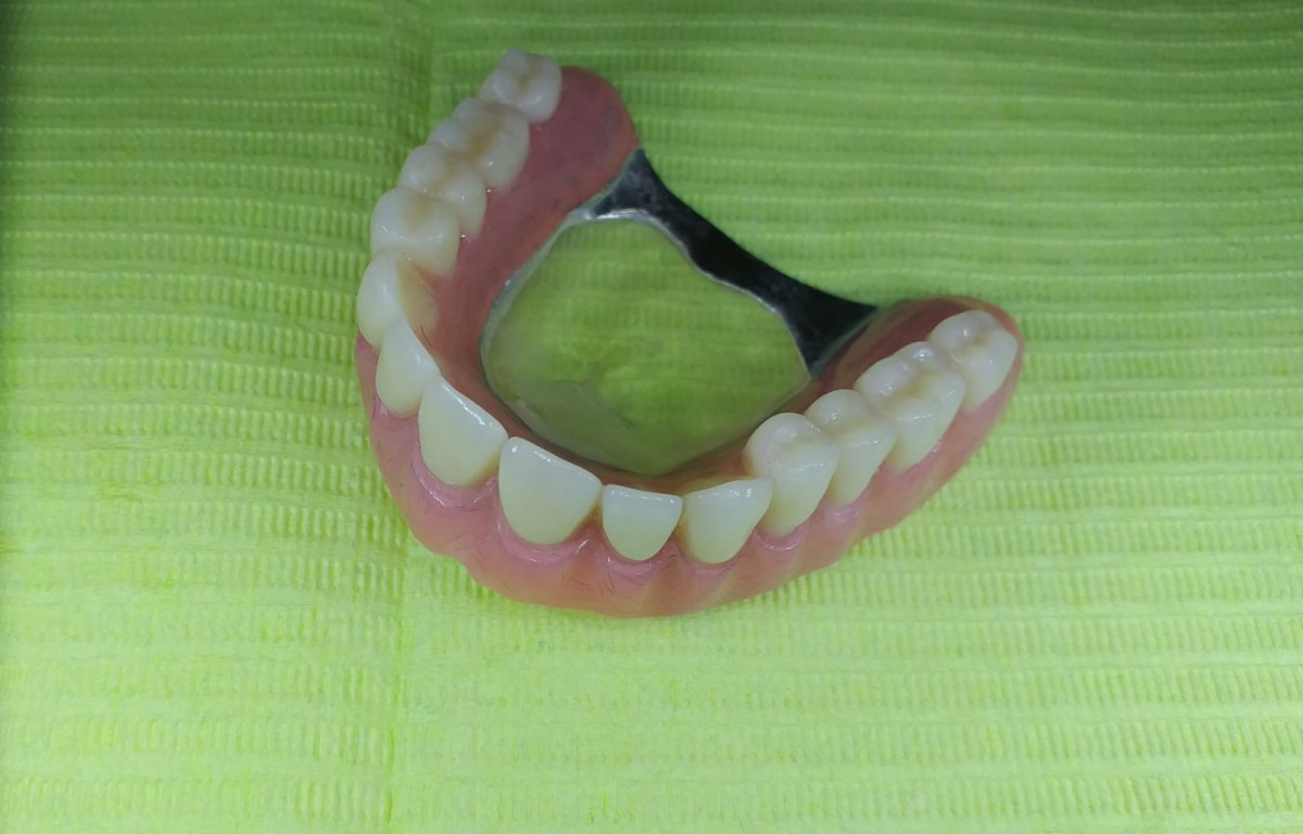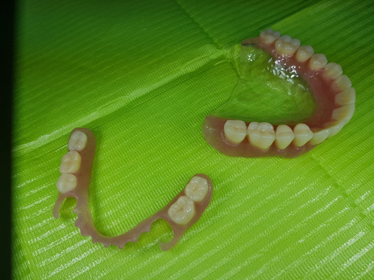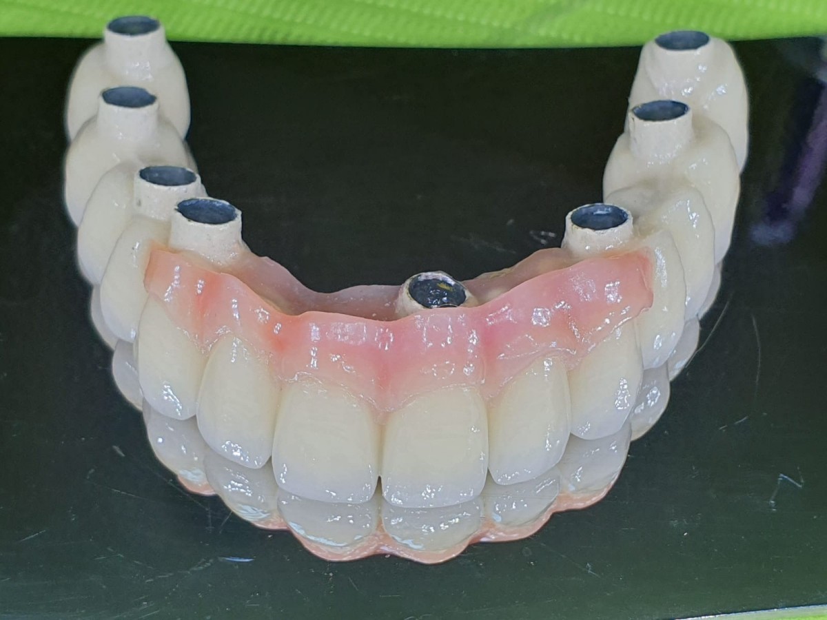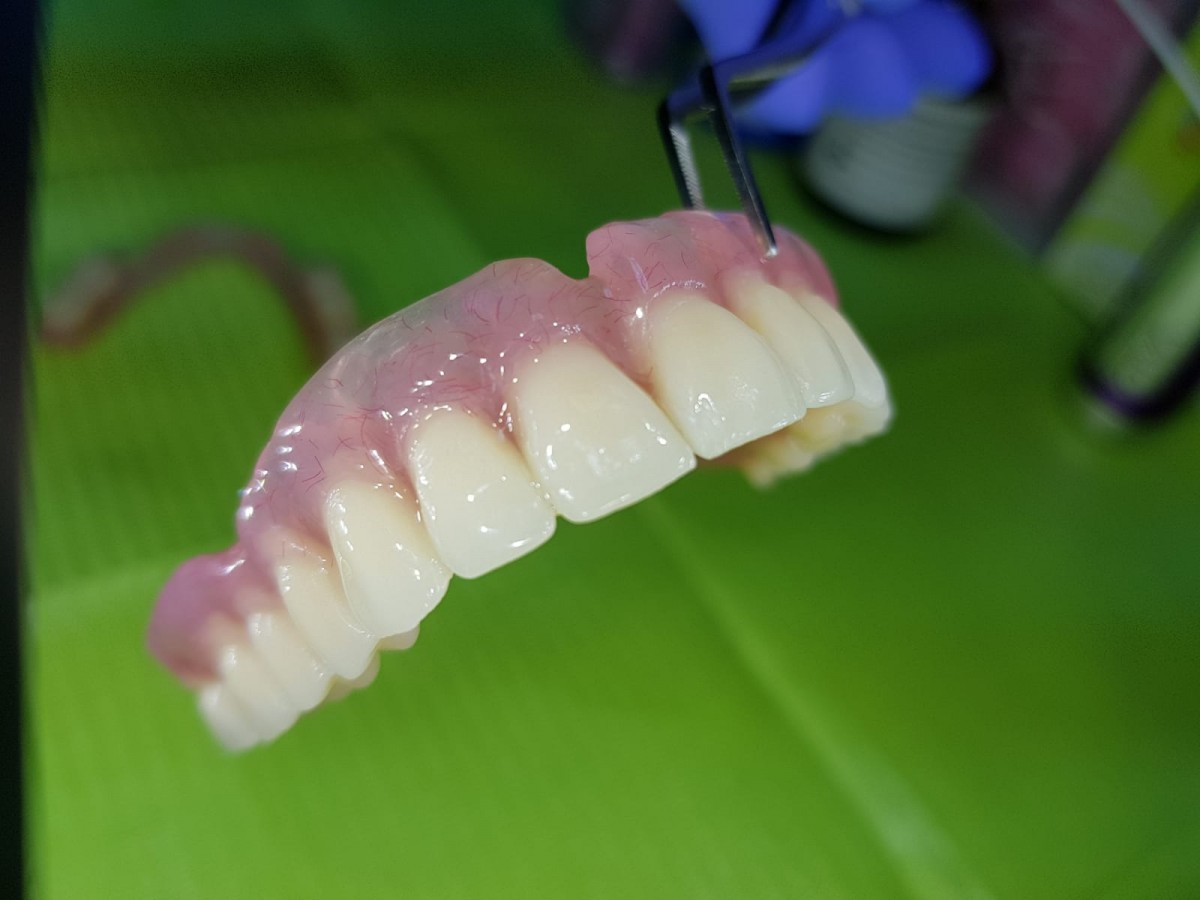 Reabilitare complexă inferioară cu supraproteză pe implanturi iar superioară cu proteza totala elastică cu bară personalizată.